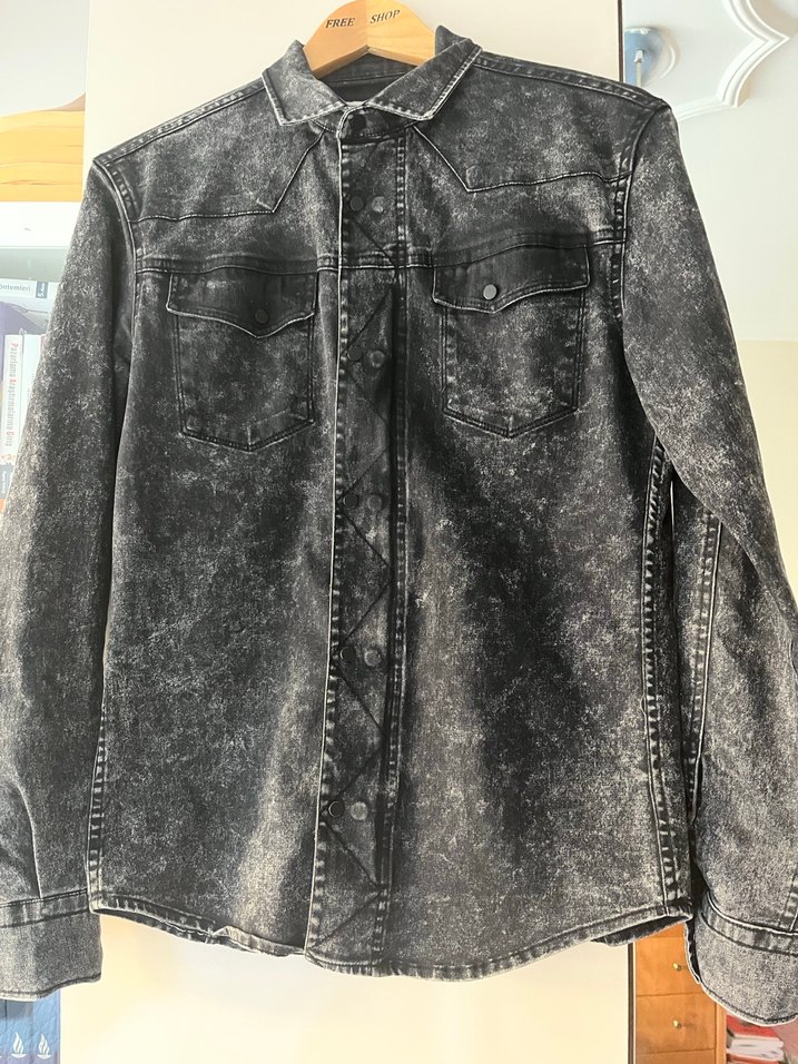 Gri denim erkek gömlek, düğmeli, uzun kollu ve notched yakalıdır. Dar kesimiyle grunge punk stilini yansıtır, günlük kullanım için uygundur. ✨ Catch markalıdır . Kaliteli bir üründür. İçi fermuarlı dışı çıtçıtlıdır. Marka temsilidir.