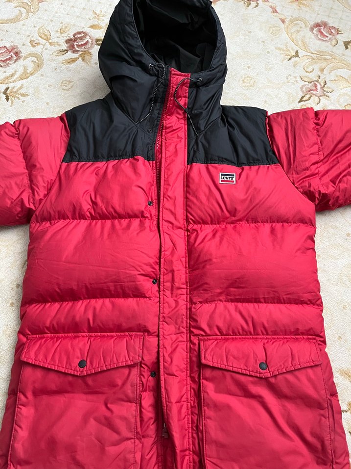 Levis Kırmızı Siyah Kapüşonlu Erkek Kış Montu