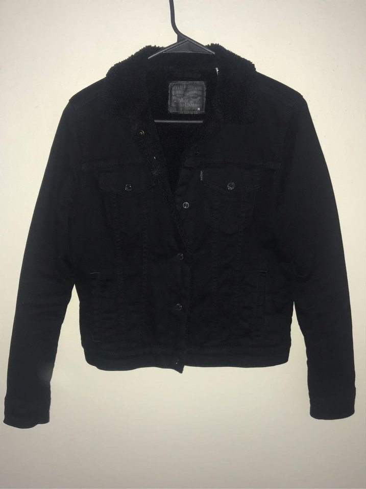 Düğmeli, siyah renkte, normal boyda, fitted kesim kadın denim ceket. Uzun kollu ve yakası kesik modelde, günlük sokak stili için uygundur. Herhangi bir sorunu yok.