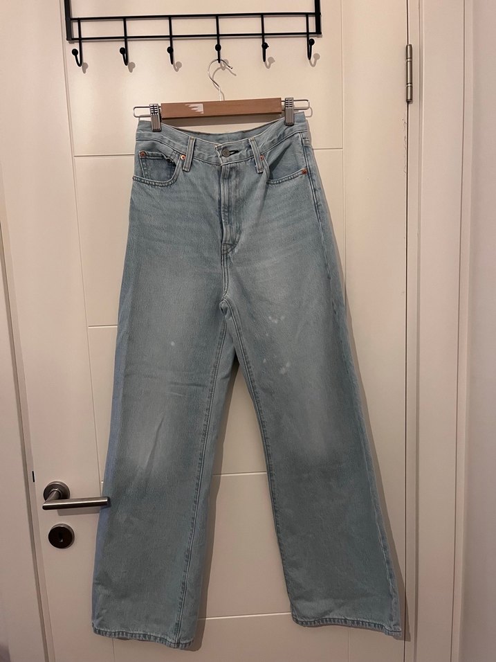 2025 sezon ürünü, bel kısmı oturuyor, bir beden bel boşluğu alındı o nedenle 26 yerine 25 beden bel.bir kere giyildi, beyaz lekeler var görüntülerde mevcut
