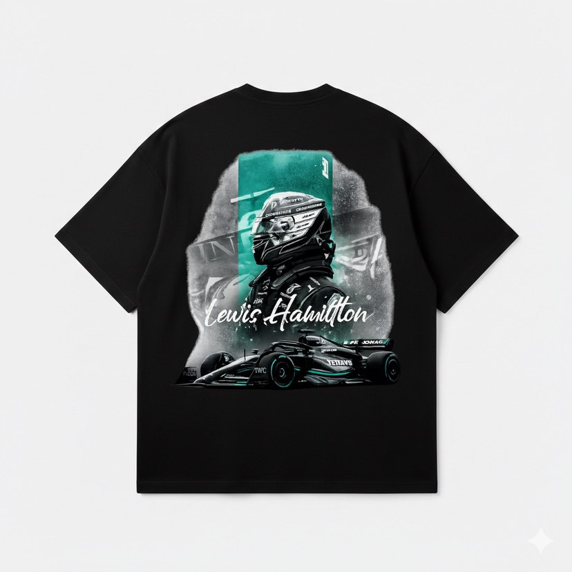 Pamuklu, kısa kollu, bisiklet yaka, siyah tişört. Üzerinde Lewis Hamilton ve yarış arabası baskısı bulunur. Spor ve günlük kullanıma uygundur. ️
