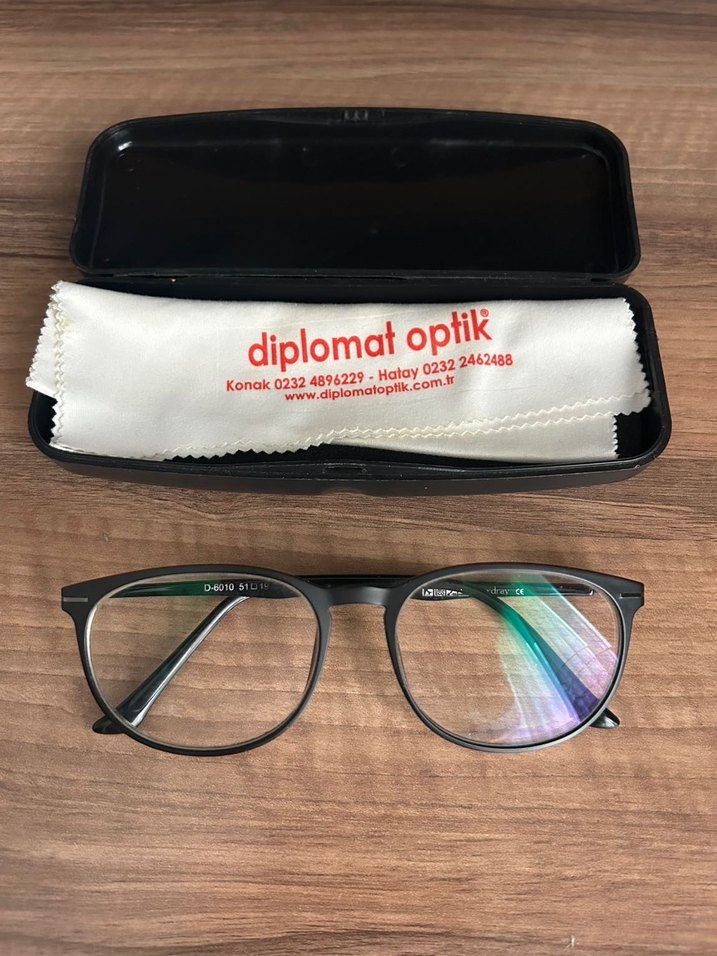 Numaralı Lexdray markasına ait optik gözlüktür. Camında çizik veya deforme yoktur. 51 ekartmandır. Numaraları çok küçüktür yok denecek gibidir ancak net numara hatırlanmamaktadır. İsteğe bağlı camlar değiştirilebilir. Kabı ile birlikte verilecektir.