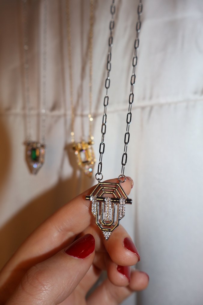 Günlük kullanım için uzun zincir detaylı, gri yılan desenli ve çağdaş gotik stile sahip altın renk kadın kolye.