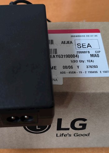 LG 19V 2.1 A (≈40 W) monitör adaptörü Model ADS-45SN-19 olan siyah LG marka adaptör, standart priz ve kompakt tasarıma sahiptir. Çeşitli LG cihazlarla uyumludur.