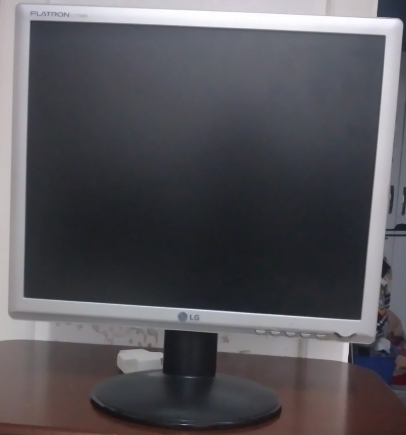 LG marka gri çerçeveli, yuvarlak siyah tabanlı monitör. ️17 inç