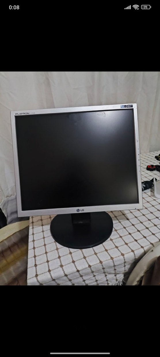 Kabloları yoktur ama çalışıyor fotoğraflari mevcut. LG monitör, gri çerçeve ve kare ekran tasarımına sahiptir. Yuvarlak sağlam bir tabanı vardır ve net görüntü kalitesi sunar. ️