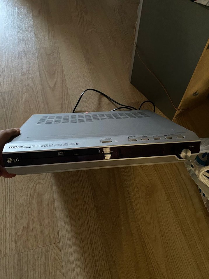 Çoklu kontrol düğmeleri ve havalandırma delikleri olan gri LG medya oynatıcı.