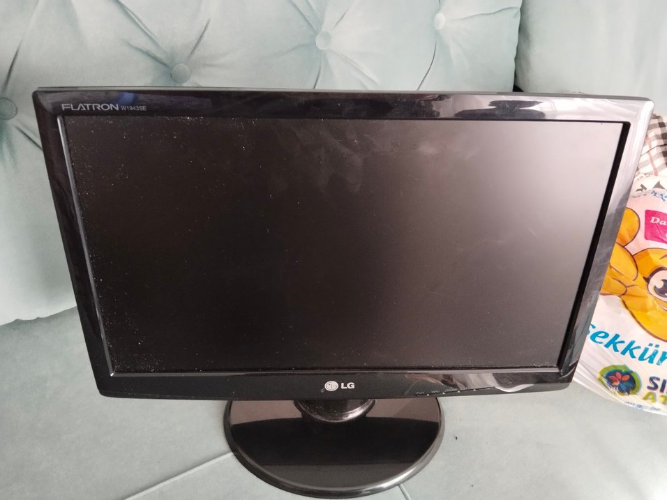 Parlak yüzeyli, yuvarlak tabanlı siyah LG monitör, günlük bilgisayar kullanımı için uygundur. ️çalışır durumda hiç bir problemi yok