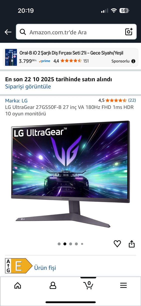 LG UltraGear 27GS50F-B, 27 inç VA panel, 180Hz yenileme hızı, 1ms tepki süresi ve HDR desteği ile oyun performansı sunar.
