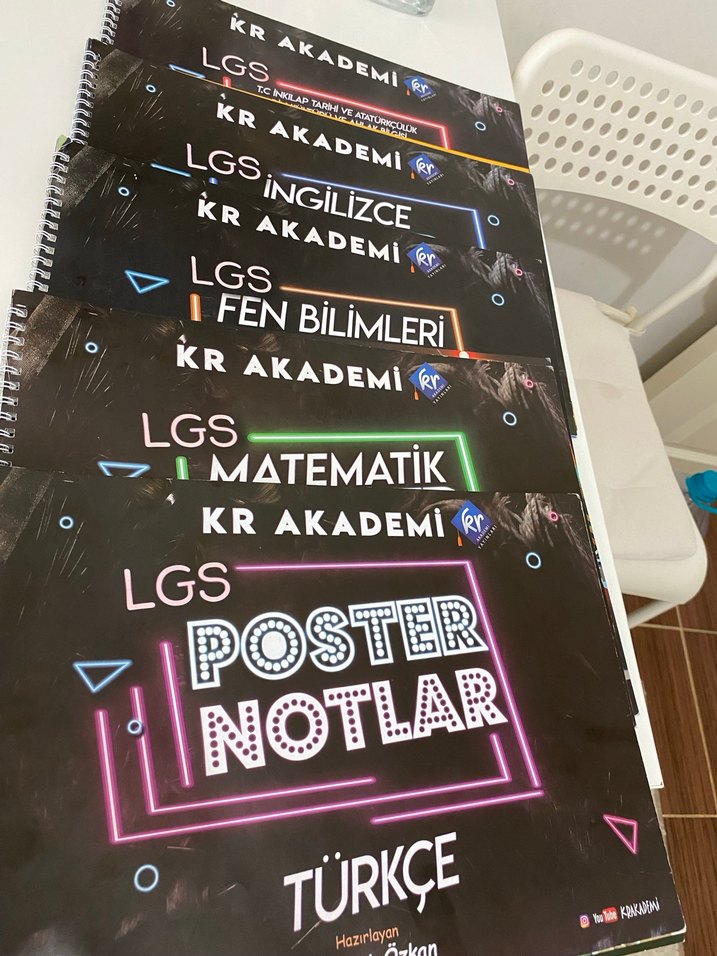 KR Akademi tarafından hazırlanan LGS Türkçe, İngilizce, Fen Bilimleri ve Matematik konu ile poster notları seti.