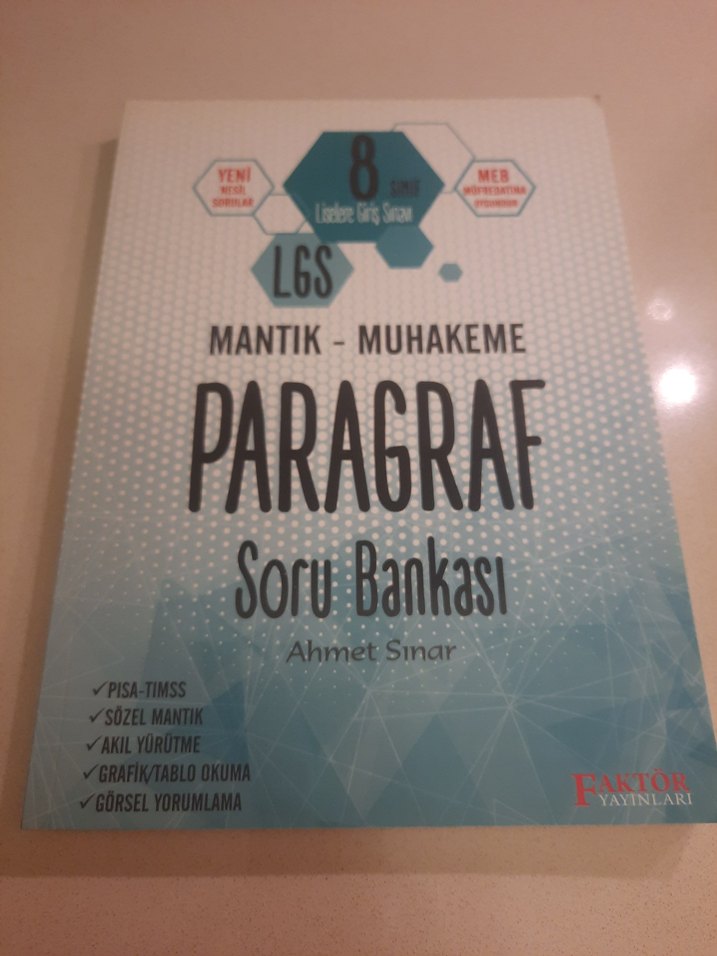 Ahmet Sınar imzalı bu LGS soru bankası mantık, muhakeme ve paragraf konularını içerir. Sözel mantık, akıl yürütme, grafik okuma ve görsel yorumlama alıştırmaları sunar.