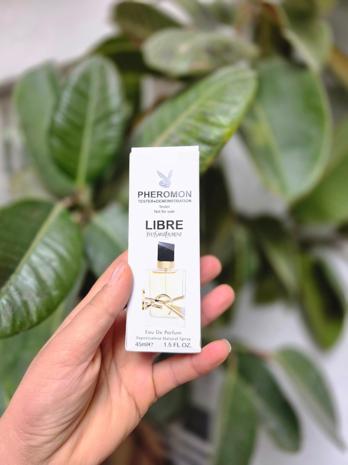 Libre Pheromon kadın parfümü, 45 ml şişede doğal sprey olarak sunulur ve sofistike bir kokuya sahiptir. Çanta boy parfümler