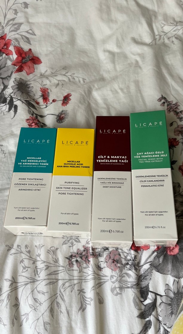LICAPE yüz tonikleri, micellar yağ, AHA-BHA asitler ve çay ağacı özü ile gözenek sıkılaştırıcı, arındırıcı, derin nemlendirici ve ferahlatıcı etki sağlar. Tüm cilt tiplerine uygun.