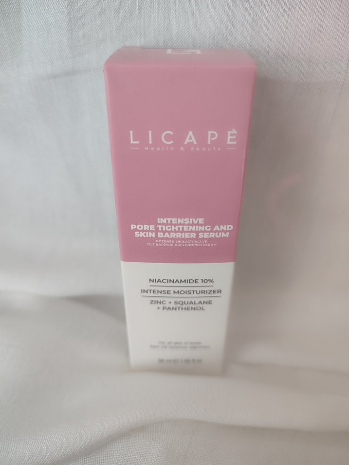 Licape serumu, %10 niacinamide, çinko, skualan ve pantenol içerir. Yoğun nemlendirme ve gözenek sıkılaştırma sağlar. SKT: 09/26