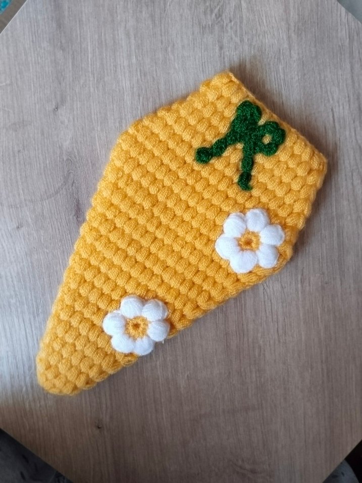 Sarı renkli, nakışlı çiçek detaylarına sahip, dokulu örgü yapısıyla kese çilek modeli lif çeyizlik hediyelik günlük olarak kullanabilirsiniz
