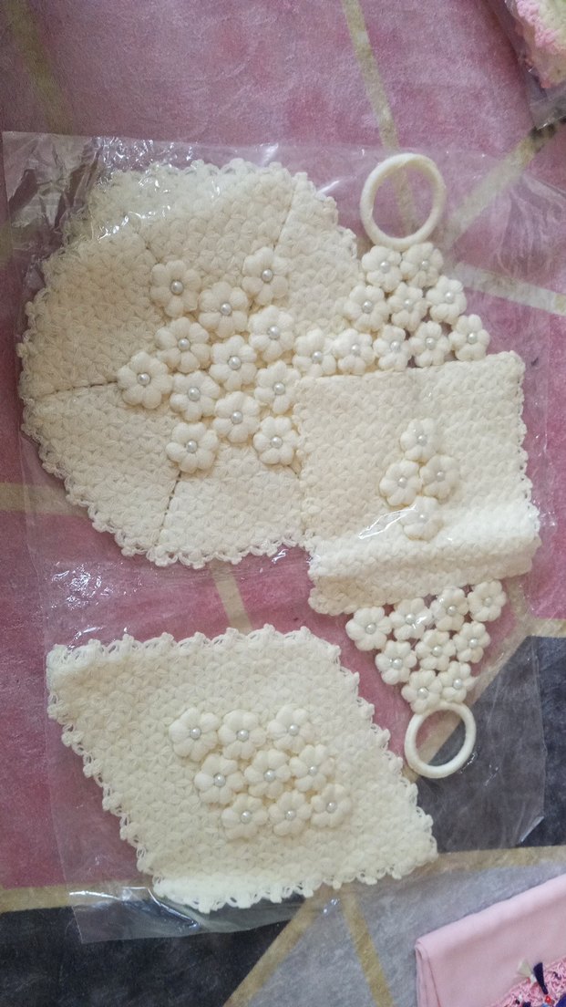 Yumuşak örgüden yapılmış, inci detaylı lif . Çiçek desenli ve farklı şekillerde parçalar ile birlikte halka tutucular içerir. internetteki fiyatına bakabilirsiniz