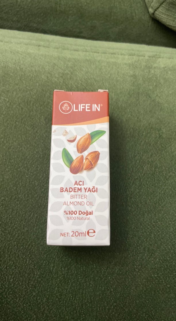 Life In acı badem yağı %100 doğal olup 20 ml şişede sunulmaktadır. Doğal özellikleriyle kullanılır.