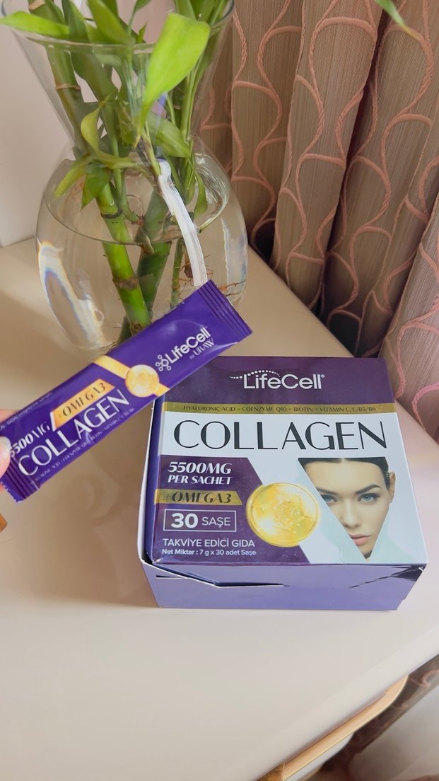 LifeCell Omega3 kollajen takviyesi, her saşede 5500mg kollajen içerir. 30 saşe kutuda olup cilt sağlığını destekler.