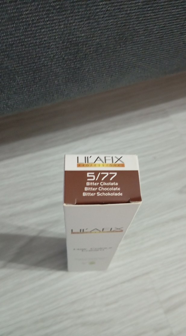 Lii'afix markasına ait 5/77 numaralı bitter çikolata renginde saç boyası, yoğun ve derin renk sağlar.