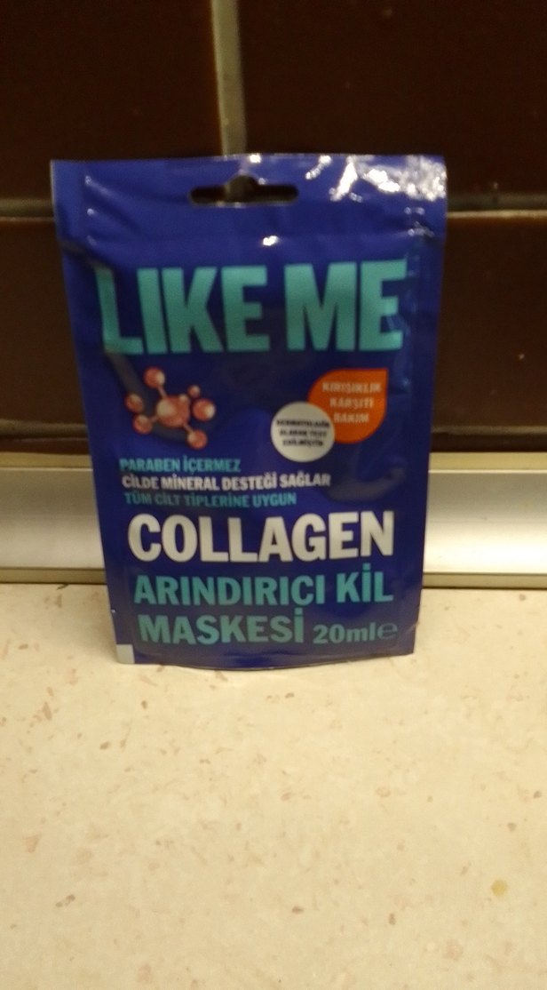 Likeme kolajen içeren arındırıcı kil maskesi, cilde mineral desteği sağlar ve tüm cilt tiplerine uygundur. Paraben içermez. Tek kullanımlık tır, yumuşacık yapıyor yüzü.