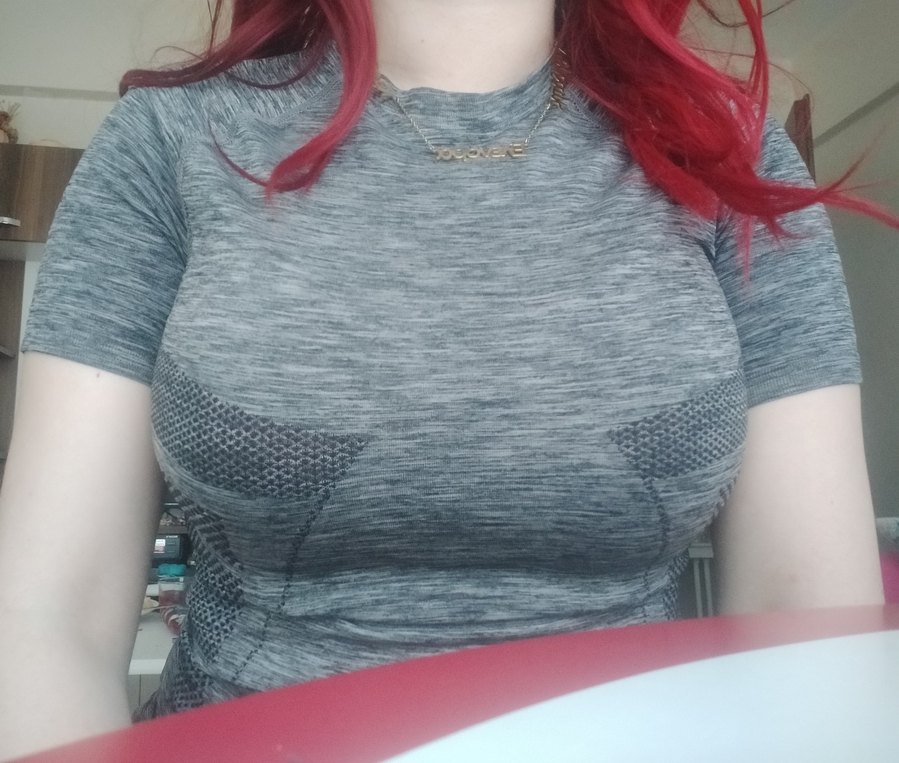Gri, yarım kollu, bisiklet yaka , vücuda oturan kadın spor tişörtü. Pürüzsüz sentetik kumaştan, sokak ve spor tarzına uygun. 36-38 uyumlu.