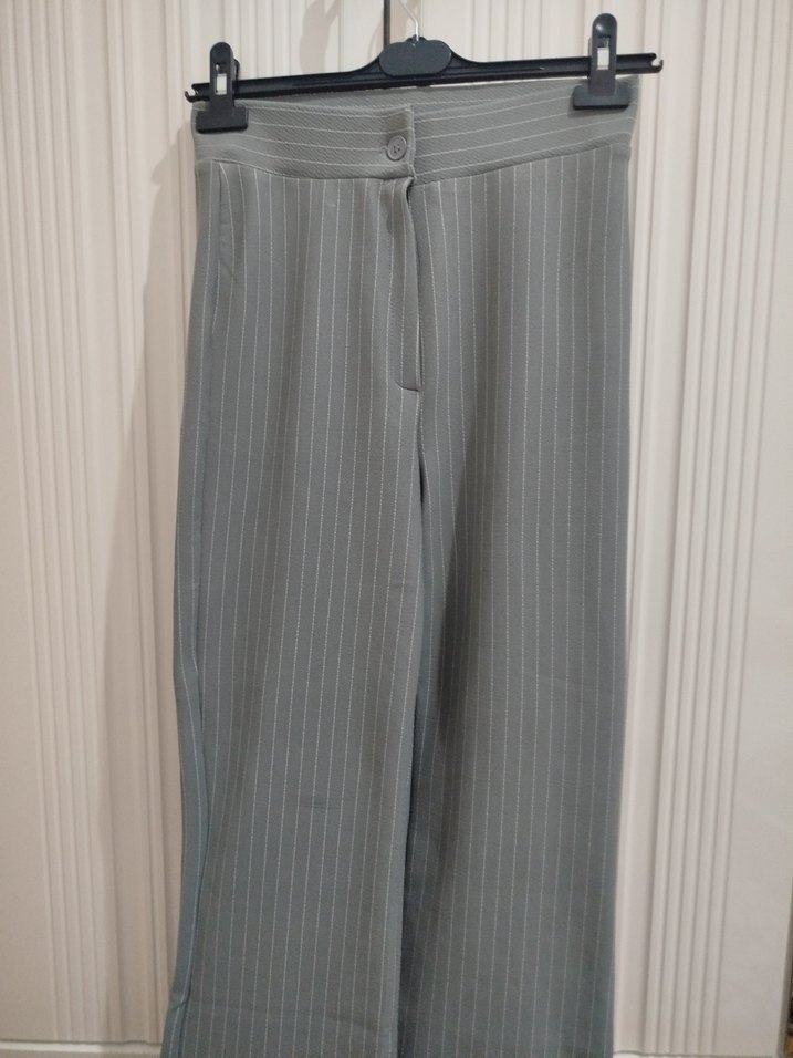likralıdır yenidir Gri Çizgili Piliseli Kadın Kumaş Pantolon