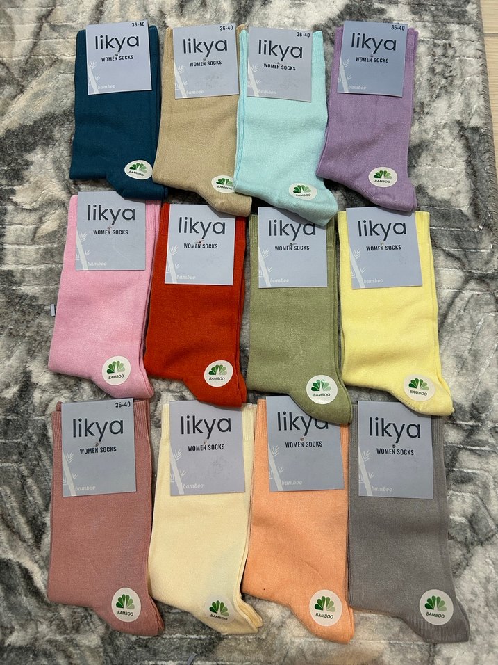 Likya marka kadın çorap seti, yumuşak bambu kumaştan, düz ve açık canlı renklerde çoklu parçalar içerir. Rahat ve kullanışlıdır. 36-40 beden