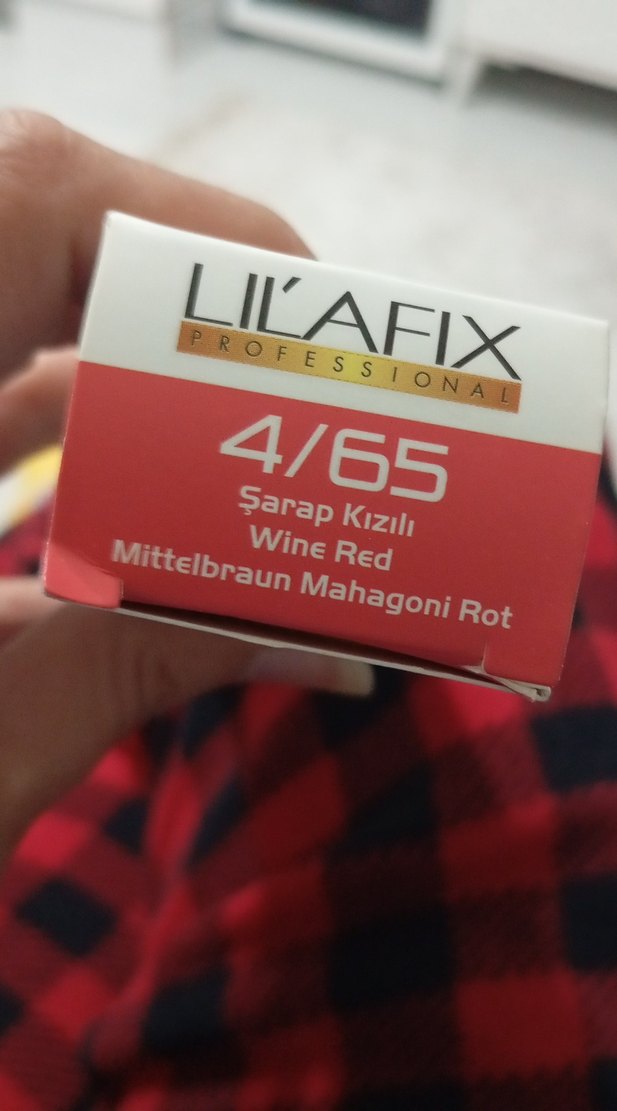 LIL'AFIX profesyonel saç boyası 4/65 numara, şarap kızılı tonunda orta kahverengi maun kırmızısı rengi sunar.