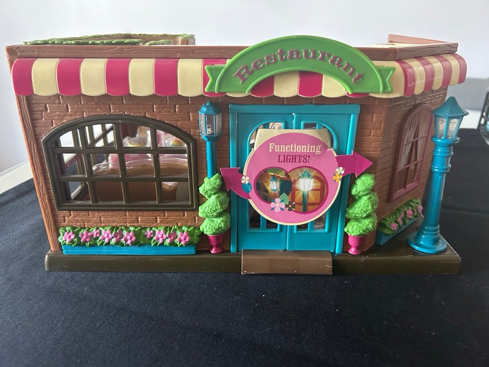 Çalışan ışıkları olan renkli pembe oyuncak restoran, detaylı süslemeler ve canlı tasarıma sahip. Yurtdışından alındı kutusı hiç açılmadı.