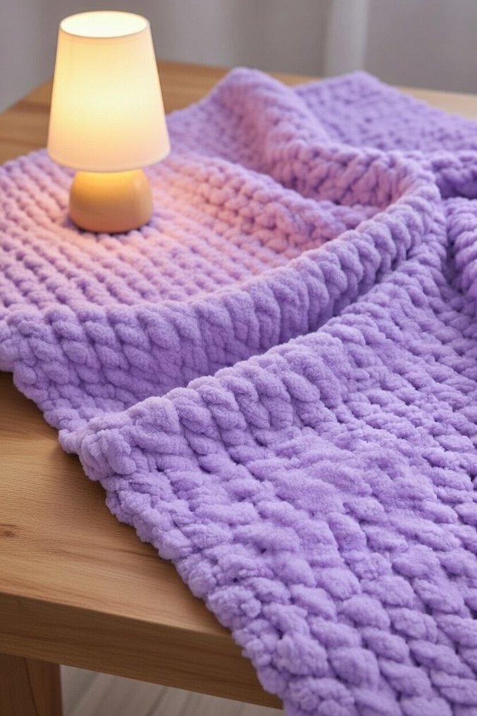 Lila Alize puffy Örgü Battaniye