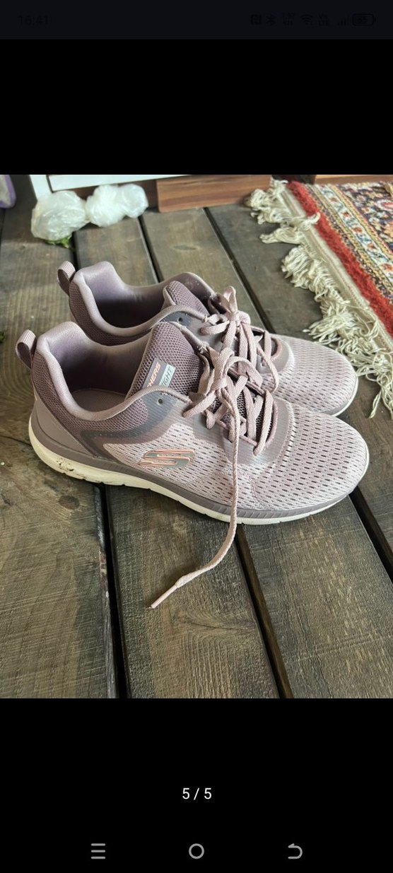 Lila bağcıklı, ince topuklu kadın spor ayakkabısı. Kauçuk tabanlı, desen içermeyen sade tasarım, spor ve sokak stiline uygun. Sayılı giyildi deposu yoktur