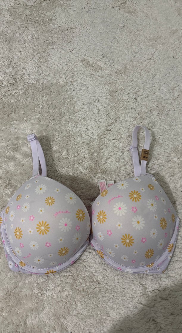 Pastel pembe renkte, çiçek desenli bohem tarzda sütyen. Ayarlanabilir askıları ve rahat kesimiyle konfor sağlar.32 DD beden