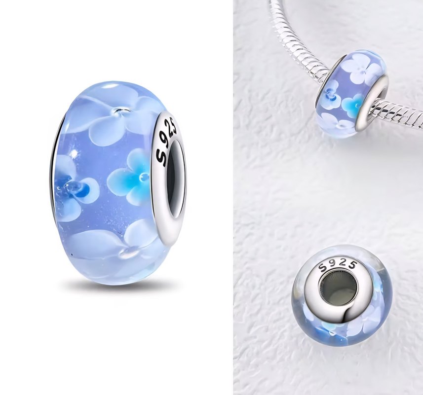 Lila çiçekli murano charm