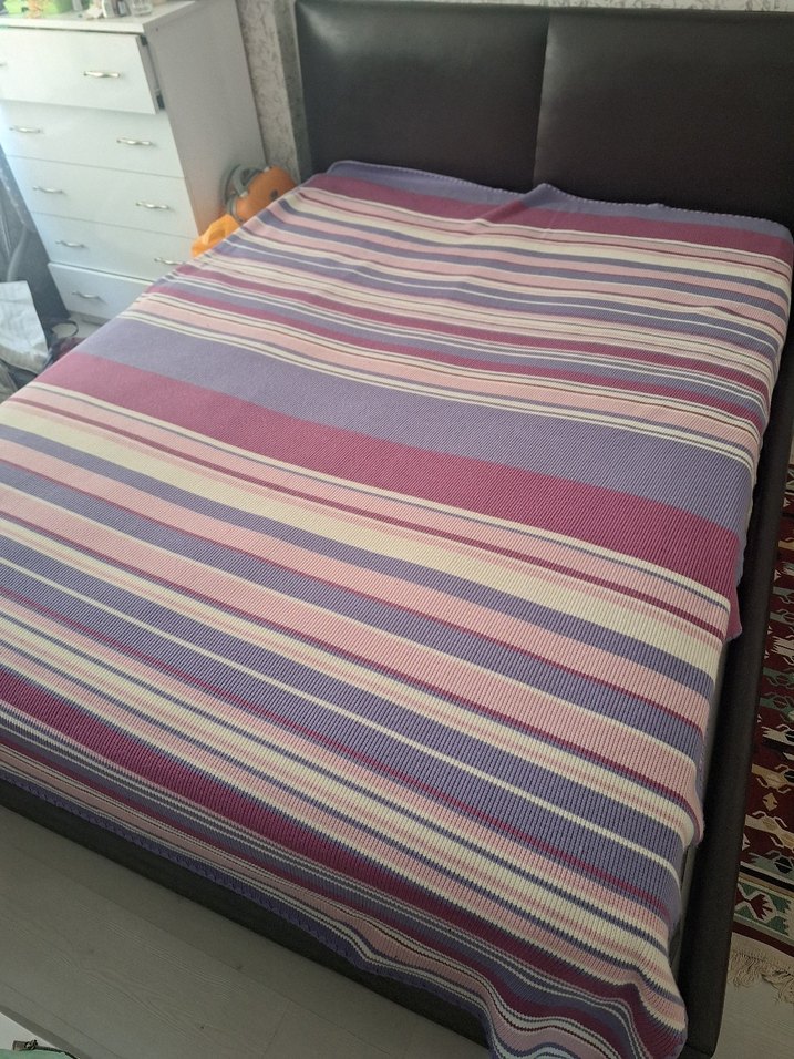 Pastel tonlarda lila çizgili, yumuşak dokulu yatak örtüsü. Yatak odasına sakin ve rahat bir hava katar. ️cok amaçlı kullanılabilir makinede yıkanır en 170 boy 230