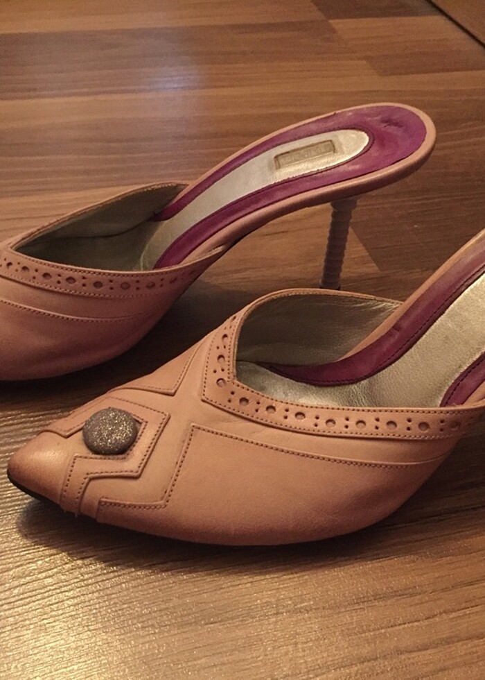 Gerçek deri topuklu her kullanıma uygun şık ayakkabı terlik