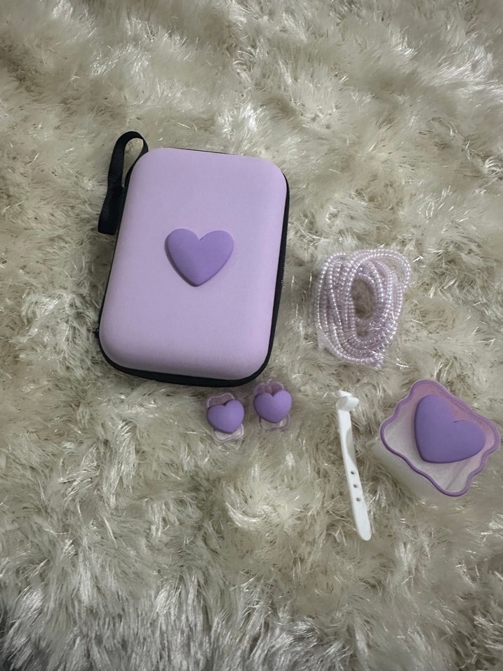Pastel lila detaylı telefon aksesuar seti.