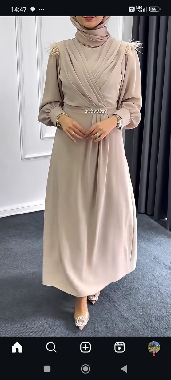 Lila renkte, V yakalı, uzun kollu, drapeli ve regular fit uzun elbisedir. Ofis için uygun, ipeksi dokudadır. ✨