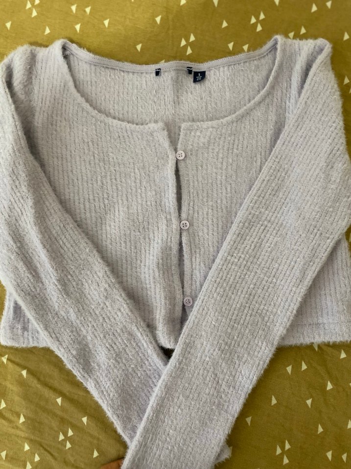 Lila Düğmeli crop Hırka