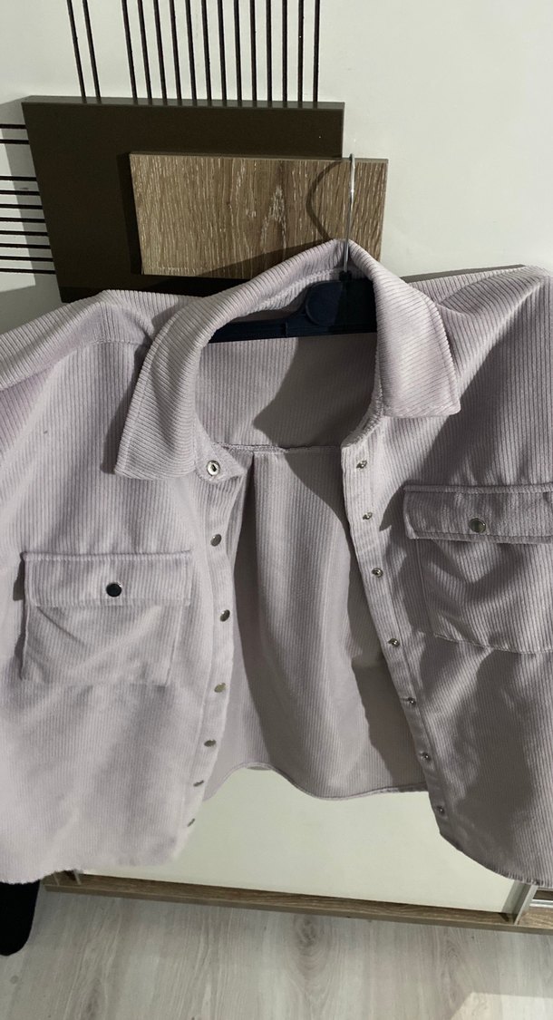 Bu kadife kadın gömlek, düğmeli ve yakalıdır. Lila renkte, uzun kollu, bol kesim ve gündelik sokak stili için uygundur.