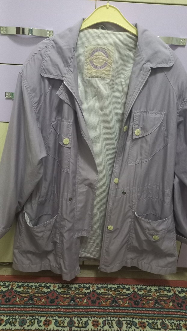 Lila renkli kadın ceketi, düğmeli cepler ve düğmeli ve fermuarlı kapama ile rahat kesime sahip. Uzun kollu, notched yaka ve midi boyda, sentetik kumaştan üretilmiştir.