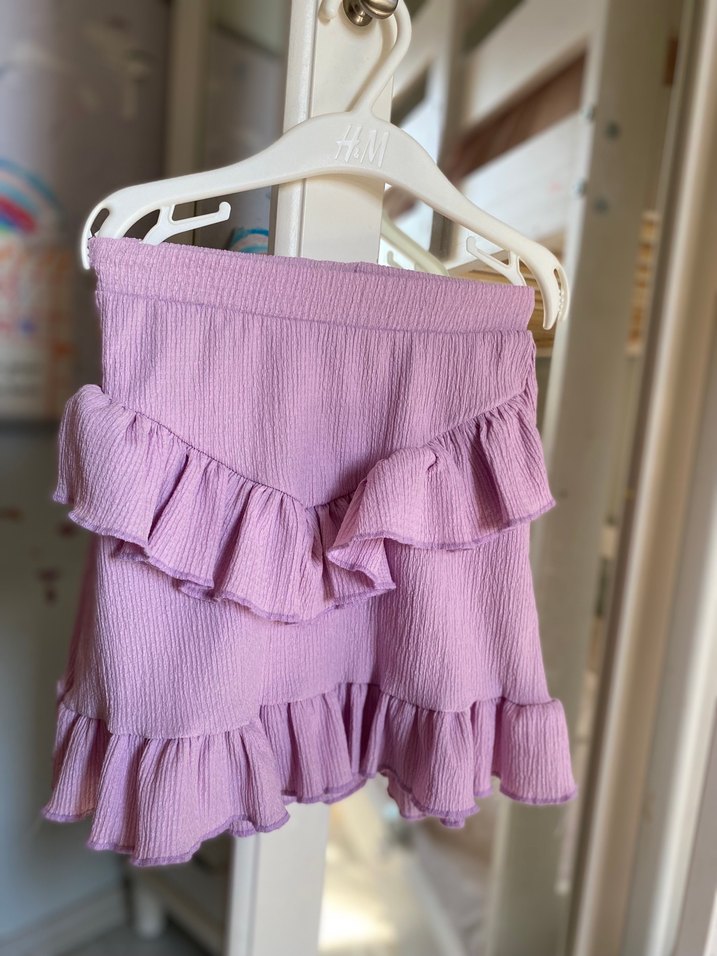 Lila fırfır detaylı etek, bohem tarzı yansıtır.