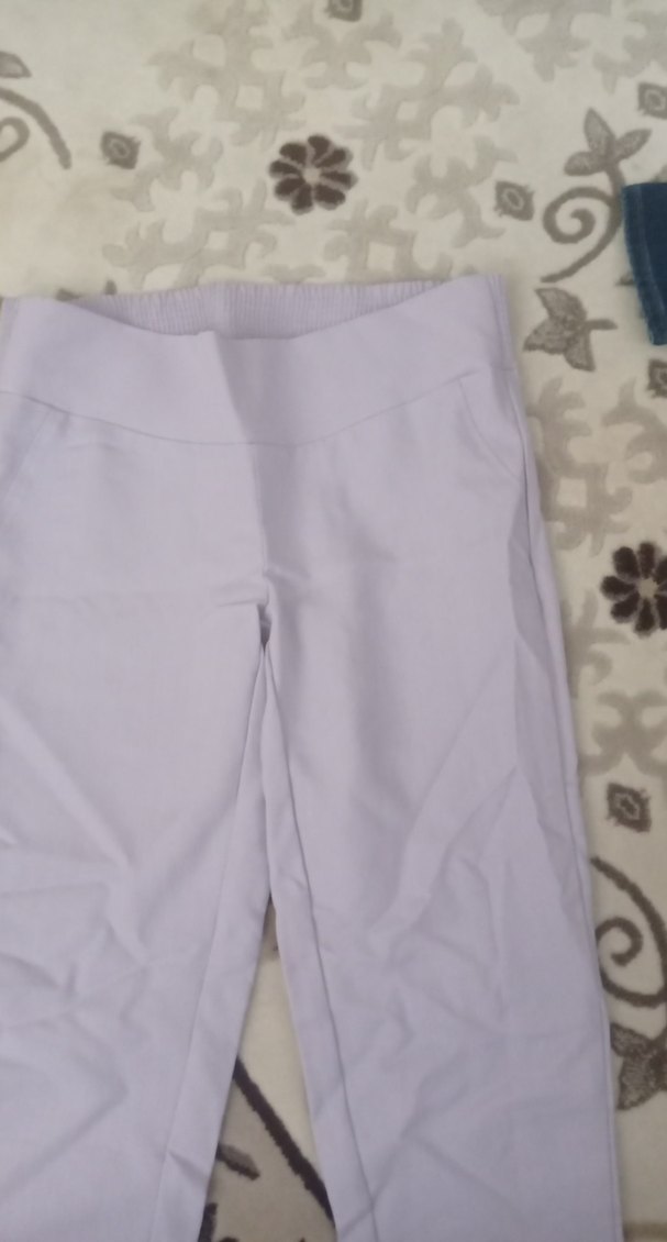 Lila renkte, dar kesim ve orta boy hamile pantolonu. Yumuşak sentetik kumaştan, trend günlük kullanım için uygun normcore tarzında.