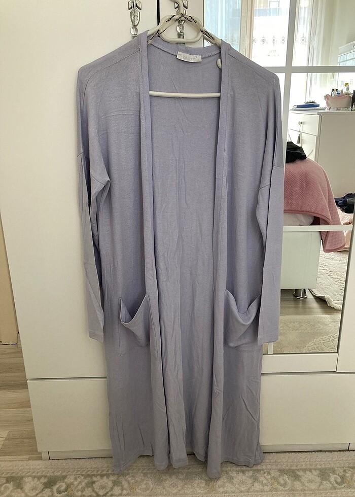 Ürünü hiç kullanmadım ve yıkamada yapmadım aldığımdan beri dolapta duruyor düğmesi ve fermuarı yok. S beden yazıyor ama M-L giyene olur malı çok kalın değil ince bir yapısı var, çarşıya pazara çıkarken üzerine almalık tarzda. Boy: 95 cm İki koltuk altının çevresi: 53 cm