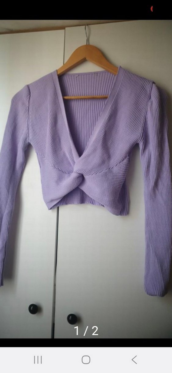 Fitted kesim, uzun kollu, lila triko Kısa boyu ve rahat dokusu ile günlük sokak modasına uygundur.