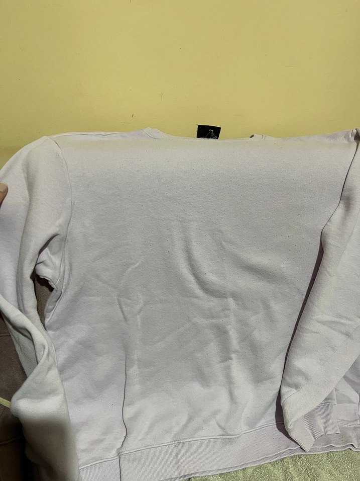 Lila renkli, yuvarlak yaka ve uzun kollu kadın sweatshirtü. Rahat kesimi ve yumuşak, sıcak kumaşıyla günlük kullanım için uygundur.