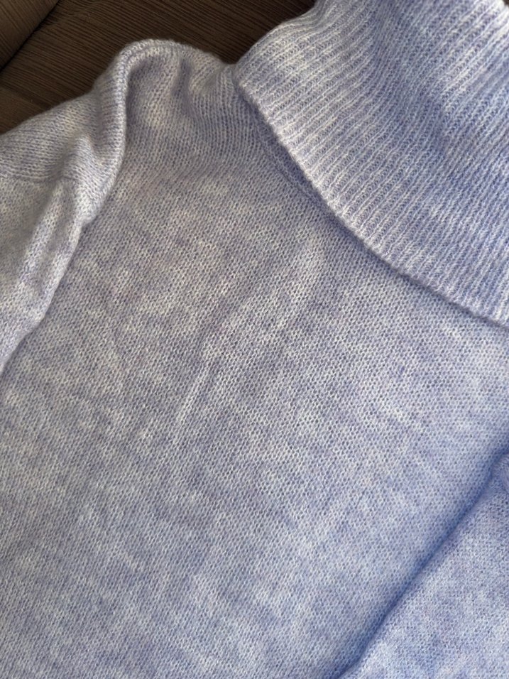 Bu kadın trikosunda boğazlı yaka ve ince örme dokusu bulunur. Yumuşak keten malzemeden yapılmış, uzun kollu ve normal boydadır. Günlük kullanıma uygundur.