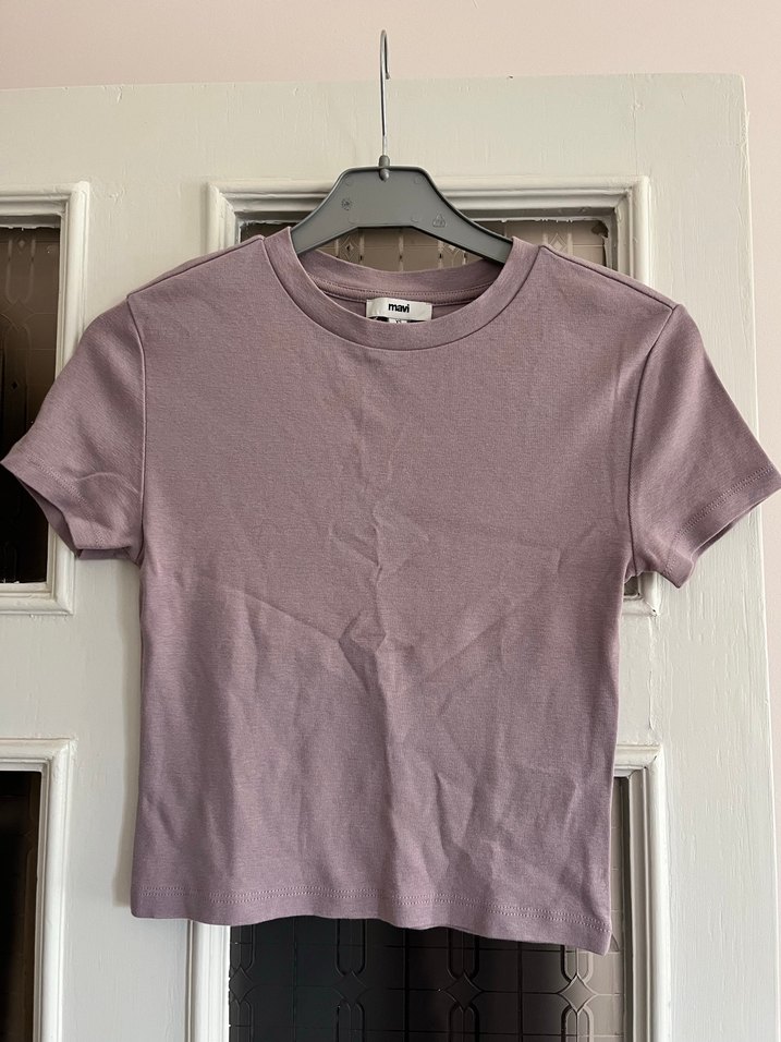 kısa kollu, yuvarlak yakalı, pamuklu fitted tişört.