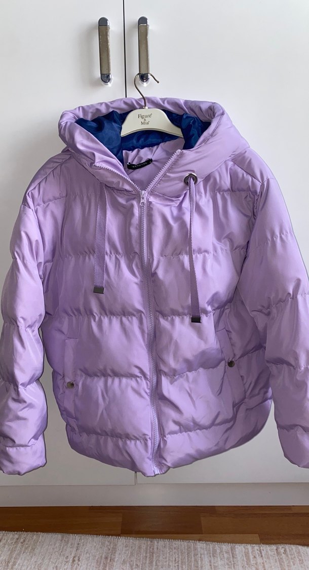 Lila renkli kısa kesim astarlı kış montu. Trendyol’un 2022 kış döneminden alındı yalnızca 1-2 kez giyildi.