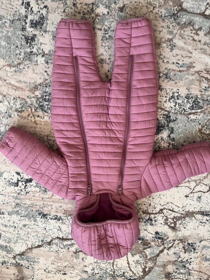 Lila pastel renkte, kürk detaylı ve kesimli yakalı bebek kız tulumu. Desensiz ve sıcak tutan kapitone kumaşlı. ❄️