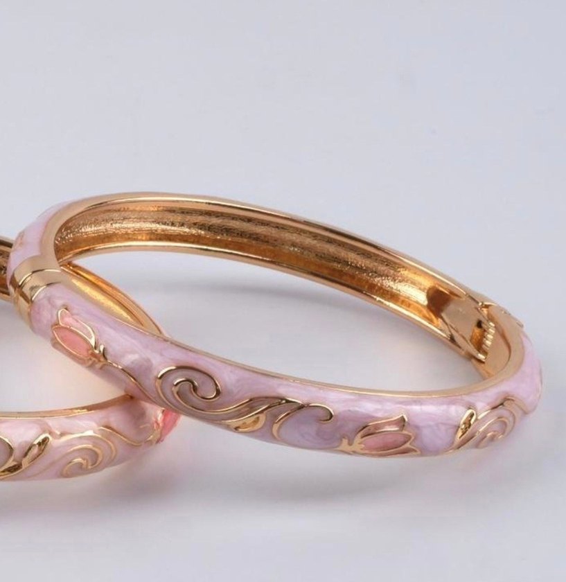 Lila renkte, tokalı ve lale desenli bu bileklik, bohem Parisian tarzını yansıtan zarif altın detaylara sahiptir. Düğünlerde kullanılabilir.